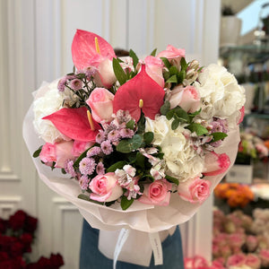 * Rose,Anthorium,Hhydredia,Astromeria,Eucalyptus,Santini