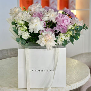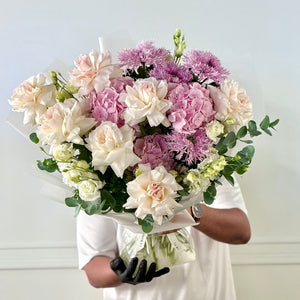 * Rose,Lisianthus,Hydredia,Asparagus,Eucalyptus,Crisantimum