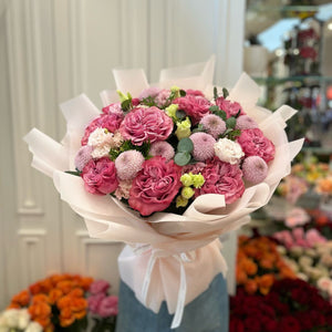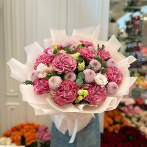 * Rose,Lisianthus,Crisantimum Bloom,Eucalyptus