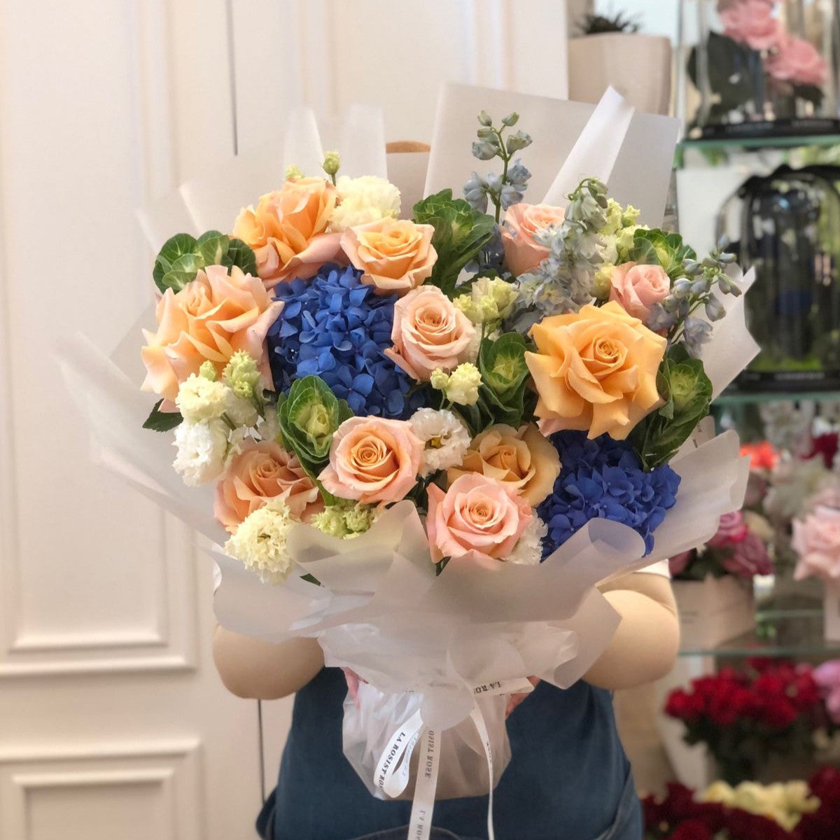 * Rose,Brasica,Dhelfinium,Hydredia,Lisianthus,