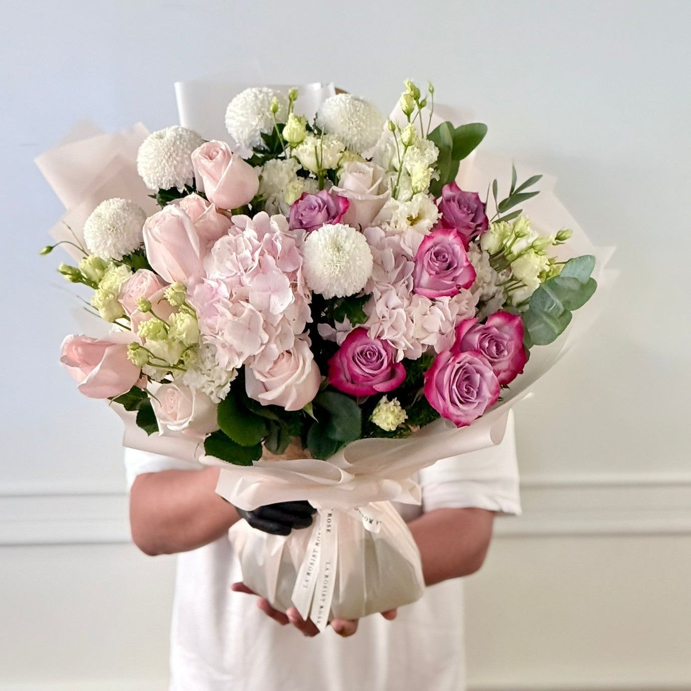 * Rose,Lisianthus,Crisantimum,Hydredia,Eucalyptus,Asparagus