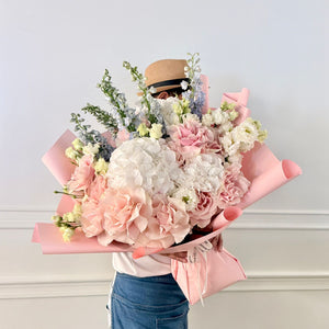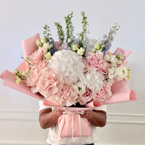 * Rose,Lisianthus,Hydredia,Dhelfinium,Asparagus