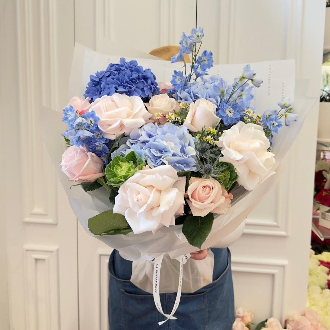 * Rose,Dhelfinium,Hydredia,Brasica,Tanacetum,Iridium