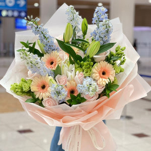 * Rose,Dhelfinium,Gerbera,Lily,Lisianthus,Ruscus,